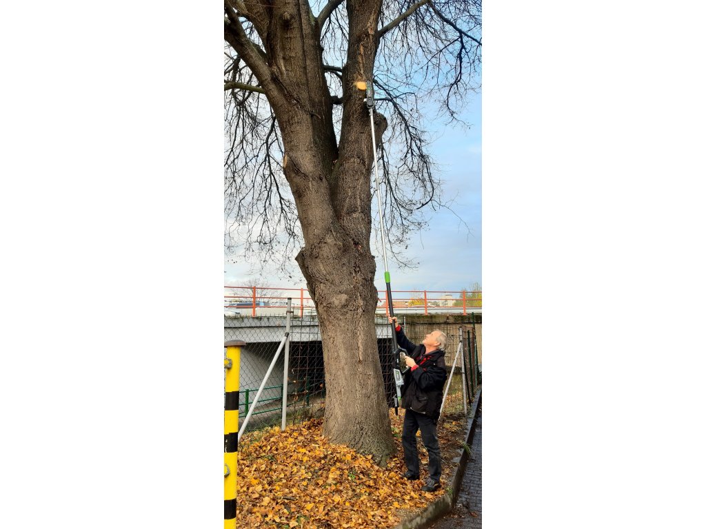 Pro zařezávání a odstraňování větví ve výšce koruny stromů je k dispozici 140 cm dlouhý nástavec s prořezávací řetězovou pilou s vodící lištou 25 cm. Jako řezný nástroj zde slouží řetízek 90PX 3/8"-1,1 - 40 článků. Řezná rychlost řetězu 22m/s bohatě stačí na úpravu, odřezávání větví do průměru 200mm či zarovnávání nebo tvarování koruny stromů bez potřeby žebříku, plošin či podobných zařízení při bezpečném a stabilním postoji přímo ze země.