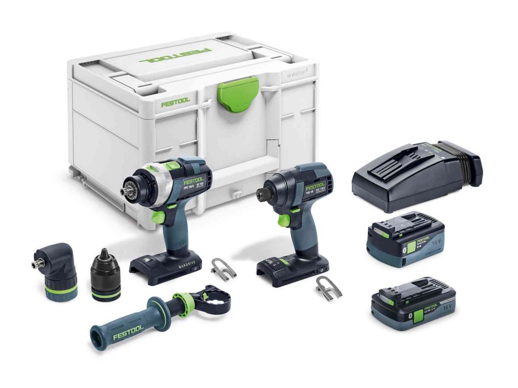 Systainer SYS3 M 237, akumulátor BP 18 Li 4,0 HPC-ASI, akumulátor BP 18 Li 5,2 ASI, rychlonabíječka TCL 6, akumulátorový příklepový vrtací šroubovák TPC 18/4, akumulátorový rázový utahovák TID 18, přídavná rukojeť, rychloupínací sklíčidlo FastFix 13mm KC 13-1/2"-MMFP, úhlový nástavec FastFix, spona na opasek.