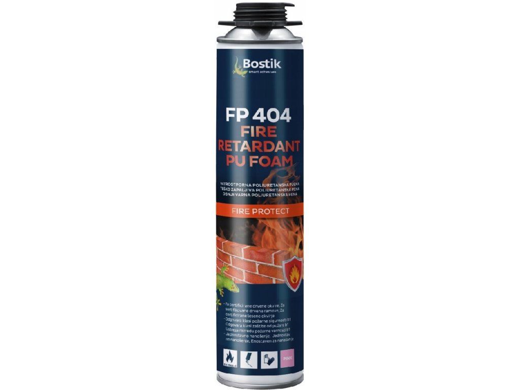 Bostik FP 404 FIRE RETARDANT PU GUNFOAM je jednosložková pistolová polyuretanová pěna určená pro montáž, těsnění a výplně ve stavebnictví. Utěsněné lineární spoje pomocí pěny v kombinaci se silikonovým tmelem, dilatační šňůrou, nehořlavou minerální vlnou a skalní vlnou o hustotě nejméně 160 kg/m3 byly zařazeny podle normy ČSN EN 13501-2:2016 do tříd požární odolnosti od EI 120 do EI 240 (v závislosti na řešení – viz referenční dokument).
