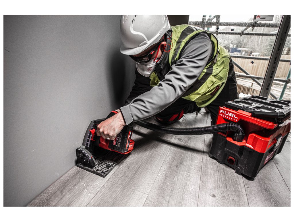 - Ponorná pila M18 FUEL™ poskytuje takový výkon, který umožňuje při řezání dosahovat rychlosti podávání jako u ekvivalentní síťové kotoučové pily, a možnost nařezat až 45 metrů 18 mm překližky na jedno nabití 5,5Ah akumulátoru