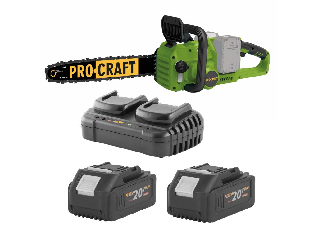 Sada aku řetězová pila Procraft PKA42/2 s bateriemi 2×20V 4Ah a nabíječkou 20/2 je kompletní řešení připravené k okamžitému použití. Díky napájení dvěma vysokokapacitními akumulátory nabízí dlouhou dobu provozu a dostatek výkonu pro náročnější řezání, zatímco bezkabelový provoz zajišťuje maximální mobilitu v terénu.