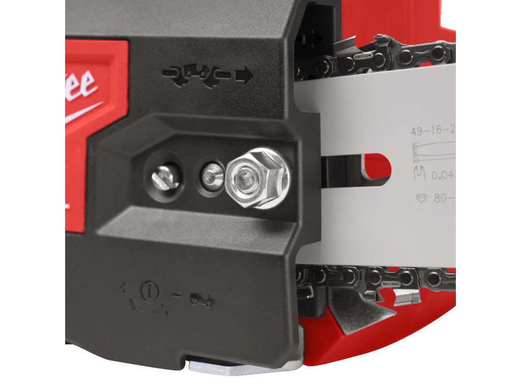 - Uložení nástroje v nářadí a snadný přístup k napínáku řetězu přinášejí větší pohodlí pro uživatele