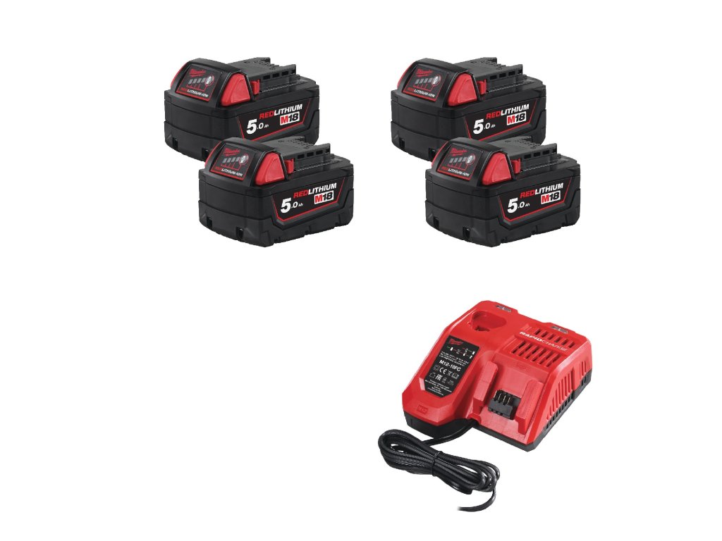 Milwaukee M18 NRG-504, sada akumulátorů a nabíječky