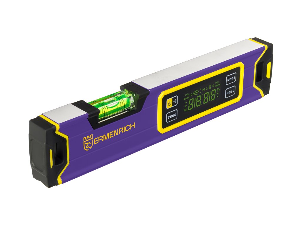 Ermenrich Verk LL30 je kompaktní digitální vodováha, která je stejně užitečná na staveništi i v domácí dílně. Ergonomické tělo pohodlně padne do ruky a minimalizuje únavu rukou při dlouhodobém používání ve stísněných prostorách, jako například při montáži stropu a značení nábytku.