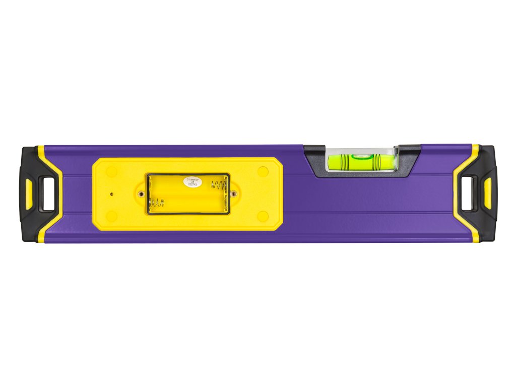 Nárazuvzdorné hliníkové tělo je vybaveno vložkami z ABS plastu a termoplastického elastomeru. Tyto materiály absorbují nárazové síly a zabraňují poškození při pádu. Stupeň krytí IP54 chrání elektroniku před stavebním prachem a stříkající vodou. Vestavěný magnetický držák na spodní straně umožňuje bezpečné připevnění vodováhy ke kovovým konstrukcím v libovolném úhlu, čímž se uživateli uvolní ruce pro značení nebo instalaci.