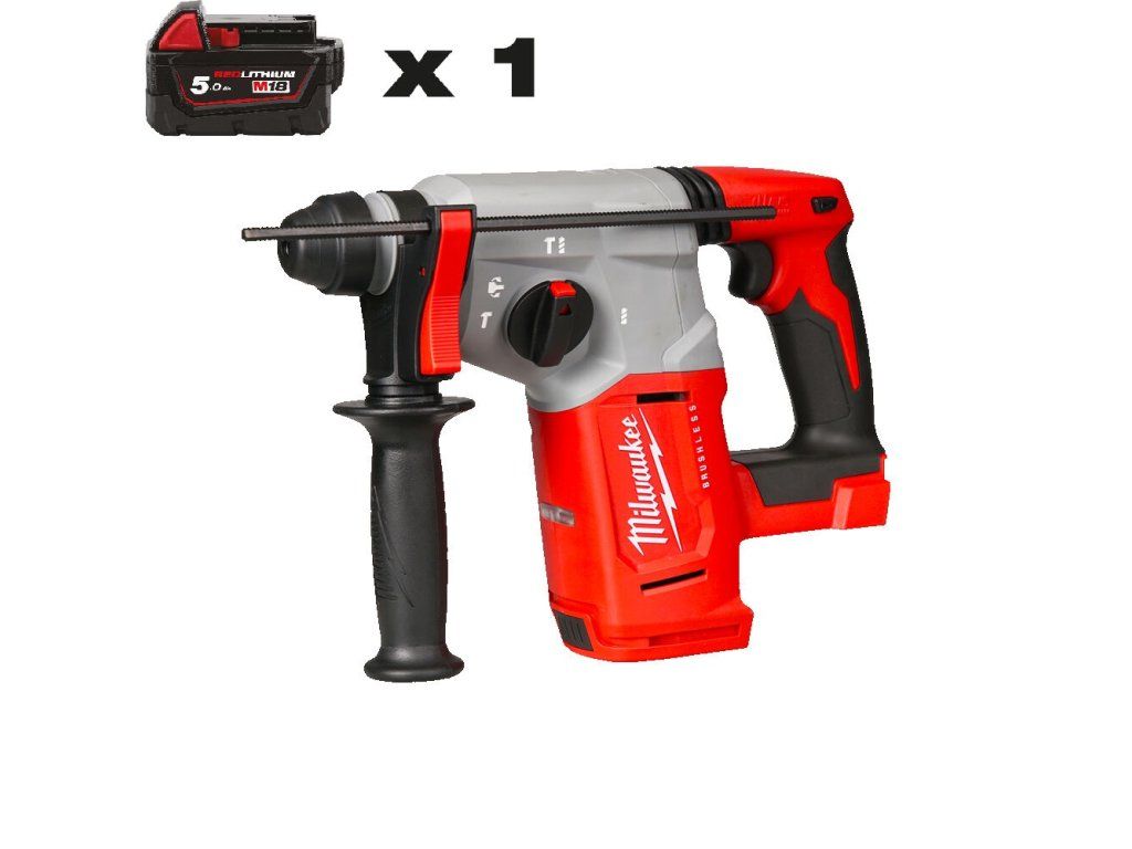 M18 bezuhlíkové kombi kladivo SDS-plus 26mm Milwaukee M18 BLH-0 + M18B5 5Ah PROMO